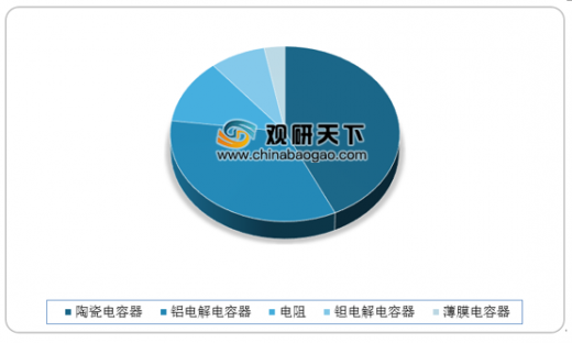 陶瓷電容器和鋁電容器占據(jù)主要市場(chǎng)份額。陶瓷電容在四類主要電容器當(dāng)中市場(chǎng)份額占比最高,達(dá)到43%,鋁電解電容市場(chǎng)份額占比達(dá)到34%。