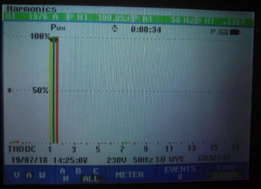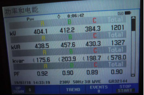 其中兩處測試點數(shù)據(jù)實拍圖如下:本次測試共有兩個測試點,通過表中的測試數(shù)據(jù)可以看出,兩個測試點的諧波數(shù)據(jù)基本滿足 GB/14549-1993 中的諧波標準要求。但功率因數(shù)均相對較低,且2#進線柜有少量5次諧波電流。