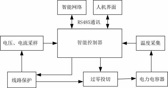 智能集成電容器主要由電網(wǎng)參數(shù)采樣、智能網(wǎng)絡(luò)、智能控制器、過零投切、電力電容器、線路保護(hù)等單 元組成。智能集成電容器一般分為上、下分體式模塊結(jié)構(gòu),模塊組裝、拆卸很方便。上方模塊由投切開關(guān)、 智能控制器、線路保護(hù)等單元構(gòu)成⑵;下方模塊由一臺(tái)或兩臺(tái)△形聯(lián)接或一臺(tái)Y形聯(lián)接電力電容器構(gòu)成。 智能集成電容器采用了現(xiàn)代檢測(cè)、電力電子、過零投切、自動(dòng)控制、計(jì)算機(jī)和網(wǎng)絡(luò)通訊等先進(jìn)技術(shù),其組 成框圖如圖1所示。